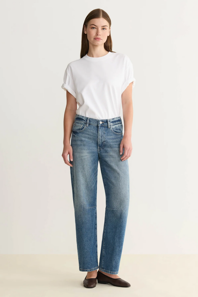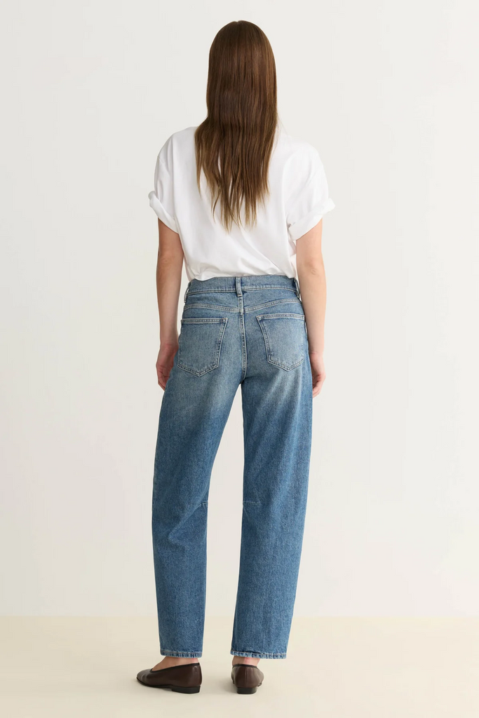 BNA is a high-rise, soft-curve barrel with a relaxed fit.
