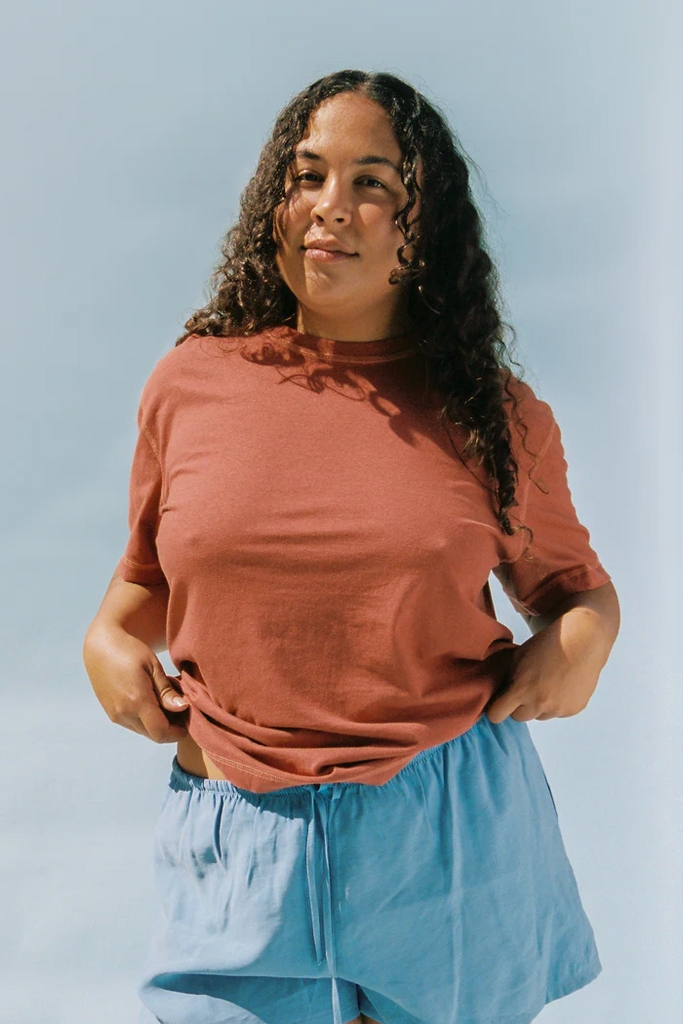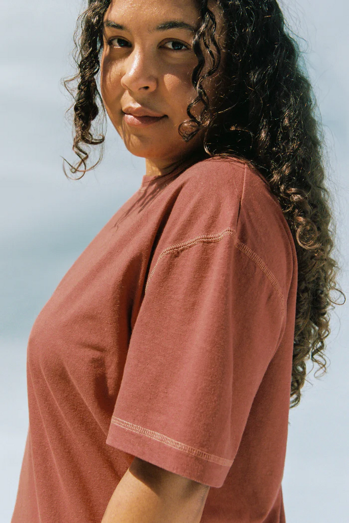 Our Rover Tee has a throwback look and a slightly thicker neckline. Embellished with unique topstitching throughout, this tee adds elevated contrast to a carefree look in a sustainable weave of hemp and cotton.