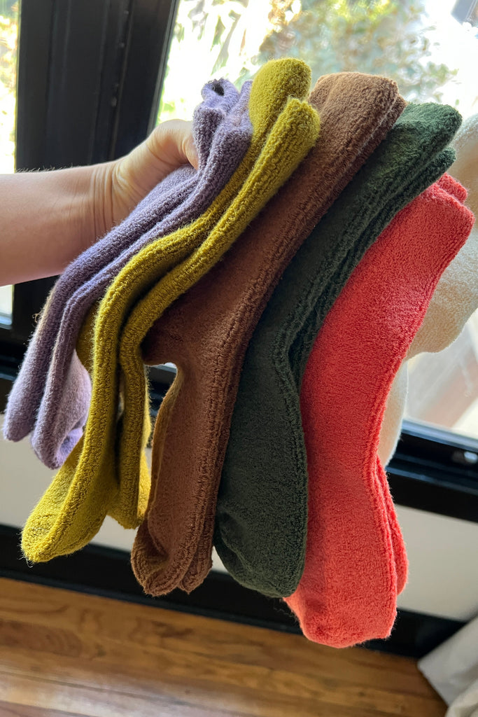 Soft and cozy terry socks.