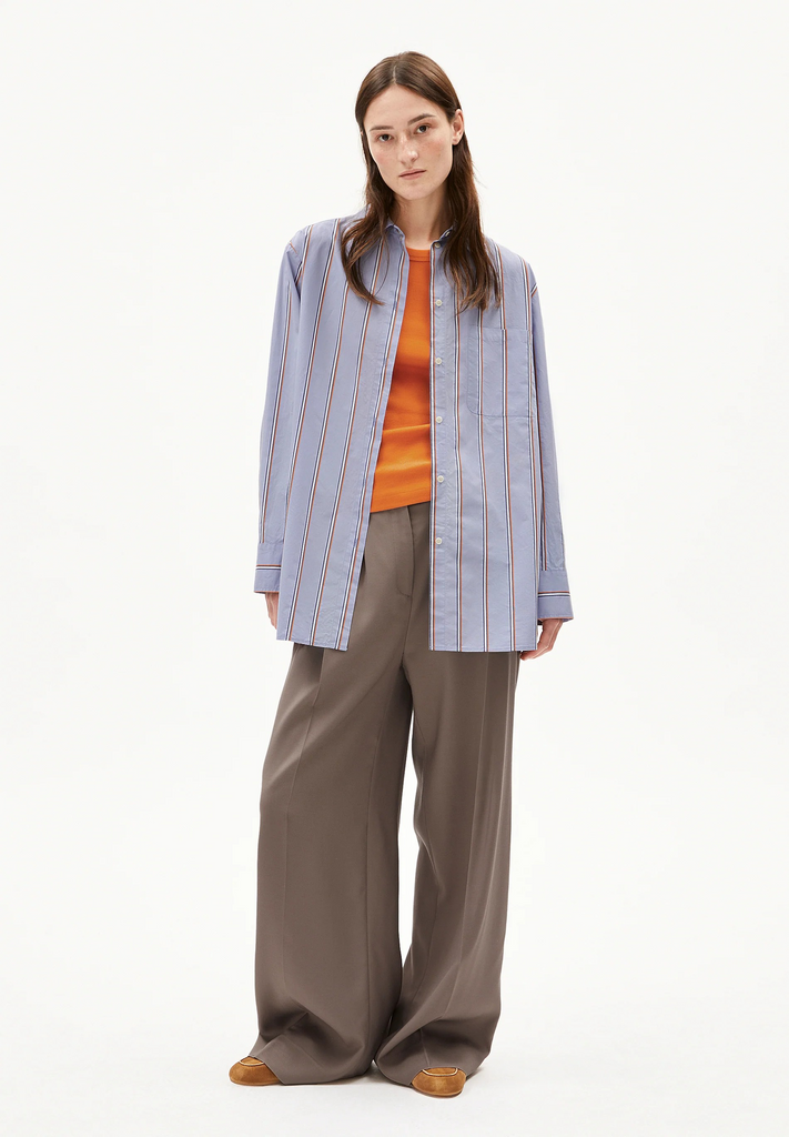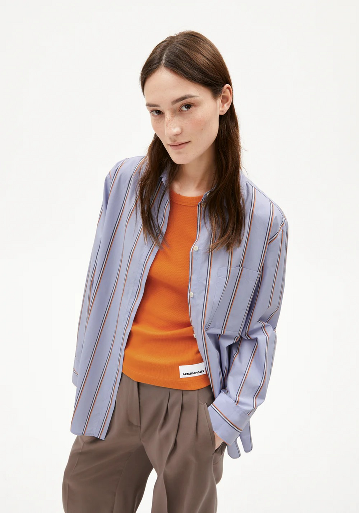 Our HALIAA STRIPED blouse features a relaxed fit and striped design, made from 100% organic cotton. A shirt collar, dropped shoulders, button placket, chest pocket, and logo embroidery round off the look.