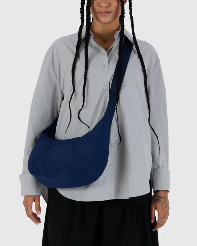Practical doesn’t have to be boring. Our Medium Nylon Crescent Bag is effortlessly casual and large enough to carry more than just the essentials. Wear it slung over your shoulder or crossbody for a hands-free experience. Complete with two interior pockets that make it easy to stay organized.