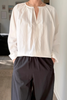 A nod to the ever-evolving blouse, the Julienne Top features thoughtful design details that speak for themselves. A round neckline with a front keyhole closure sits at the center of delicate pleating and charming raglan sleeves. It maintains a relaxed, slightly curved shape, making it easy to wear both tucked or untucked. Its lightweight cotton texture is crisp and airy—a dreamy staple for dressing up or keeping it casual.