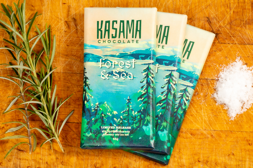 We first created this recipe for Laura and Stefan’s wedding, the theme of which was Forest and Sea, an homage to their roots – Laura having grown up on the coast, and Stefan hailing from deep in the woods of the West Kootenays. Blanketed in rich Ecuadorian dark chocolate, the piney flavour of whole rosemary…