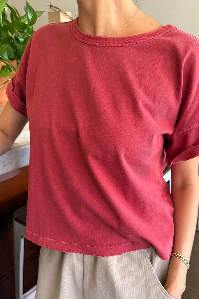 The perfect cropped but not too short tee to pair with all your high waisted bottoms is here to stay. Fille Tee is the exact length that you have been searching for in a shorter tee to wear untucked. With a light vintage distressed detail she will give you that oh so effortless look.