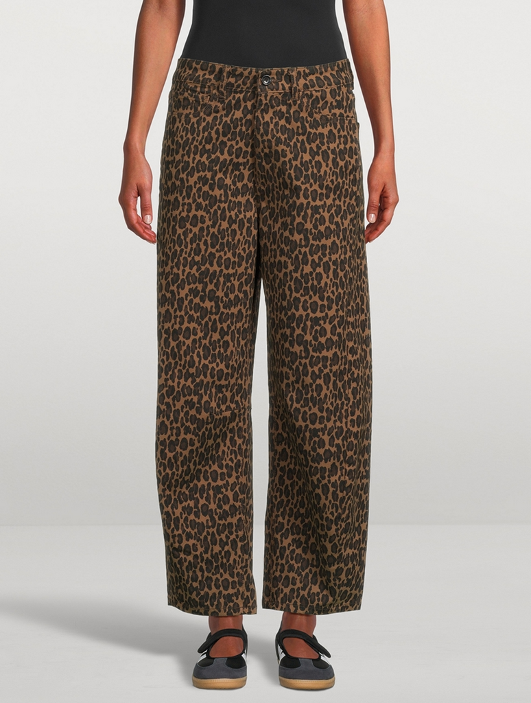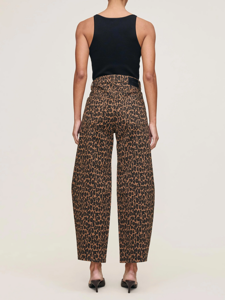 Leopard is the classic spotted pattern printed on our circular denim. It features brown horn buttons, tonal stitching, a clean hem and a black back patch.