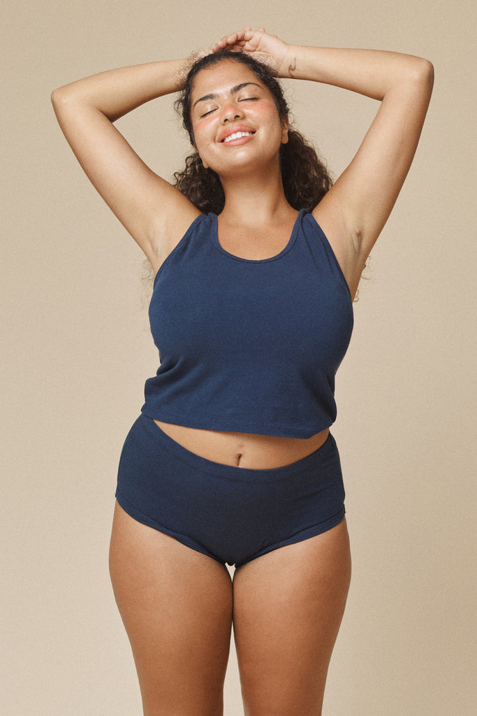 Built from a soft and breathable hemp blend with the perfect amount of stretch. High rise shape that is designed not to dig or bunch, for ultimate comfort.