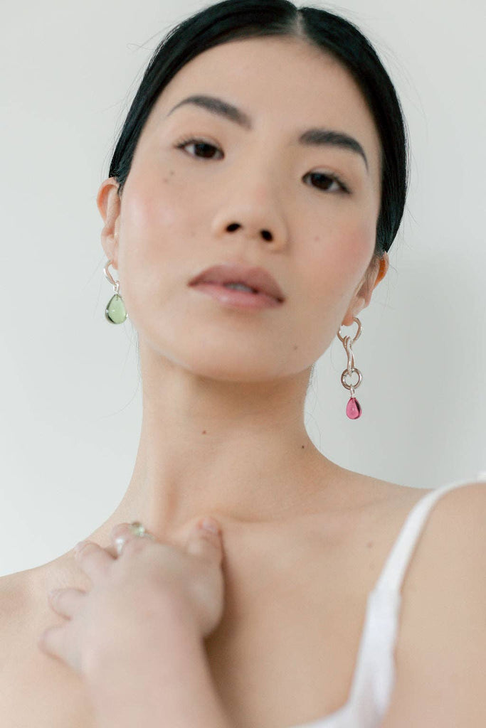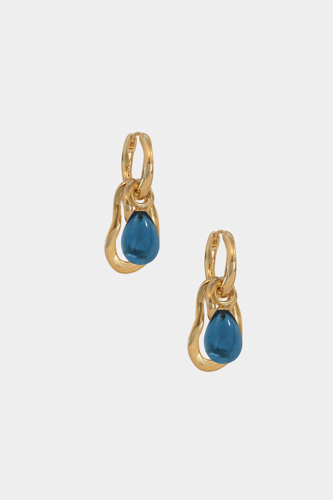 Renata Earrings + Small Drops: Ink / Gold Plated Brass (1 micron), Glass