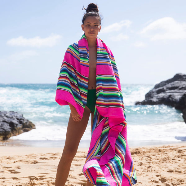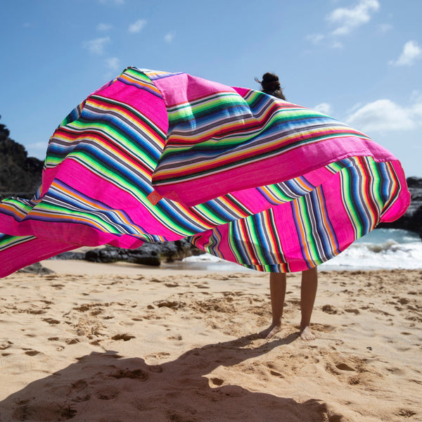 In 2009, Laetitia, a French woman in love with Mexico, left everything and moved to Sayulita, a small village on the Pacific coast. There she fell in love with a traditional fabric that local surfers use as a large beach towel.
