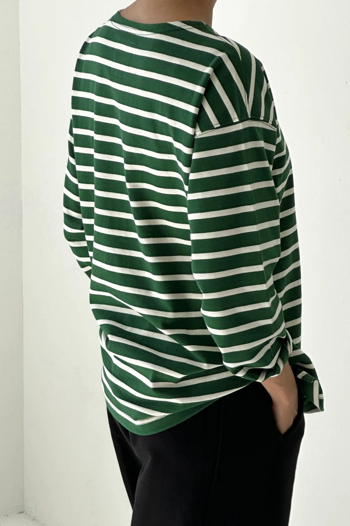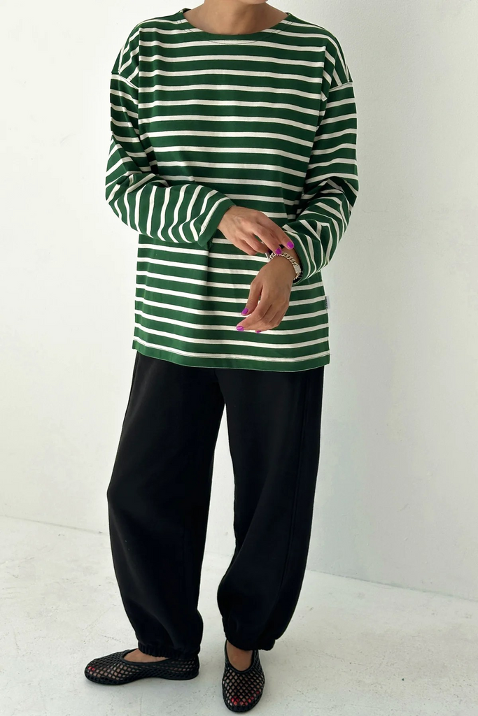 Add a touch of Parisian flair to your wardrobe. The Marseille Top takes inspiration from the timeless Breton stripe uniform, featuring a classic boat neckline and an oversized, full-length fit that gently sweeps the hips. Crafted from durable, heavyweight cotton, it offers structure without sacrificing softness, making it an ideal choice for both elevated and casual looks.