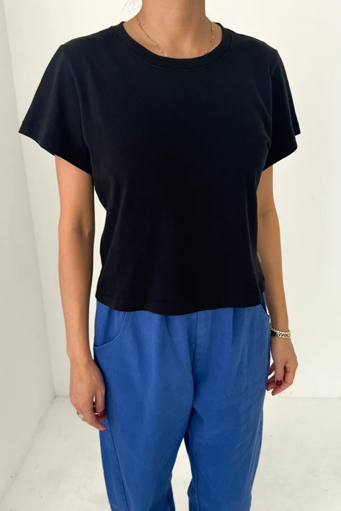 Soft, classic, and everything you want in an everyday essential. The Noel Tee features timeless t-shirt details like a clean, crew neckline and short sleeves. Made from ultra-soft cotton with a perfectly balanced weight, it never feels too thick or too thin. The length is designed to pair effortlessly with mid-rise or lower-waist bottoms.