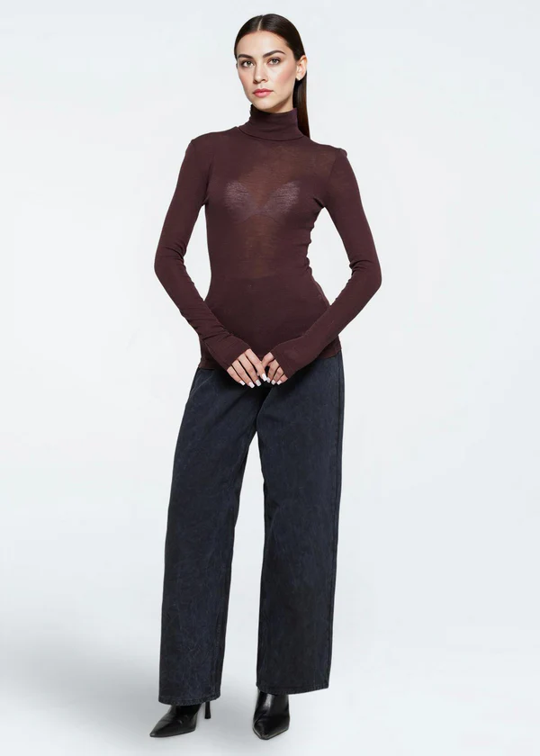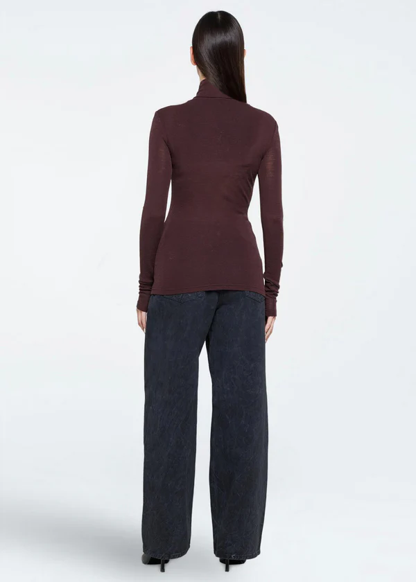 Pernilles is a knitted turtleneck jumper made from 100% merino wool for a soft quality. The sweater has a close fit and is designed with a high turtleneck and long sleeves. The model is 180 cm tall and wears a size small.