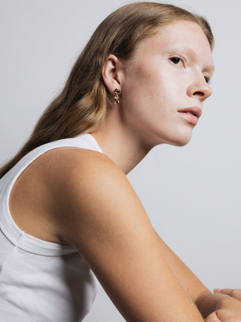 * 14k Gold plated brass dangle earrings with genuine Iolite and Smoke Quartz gemstones and gold vermeil posts