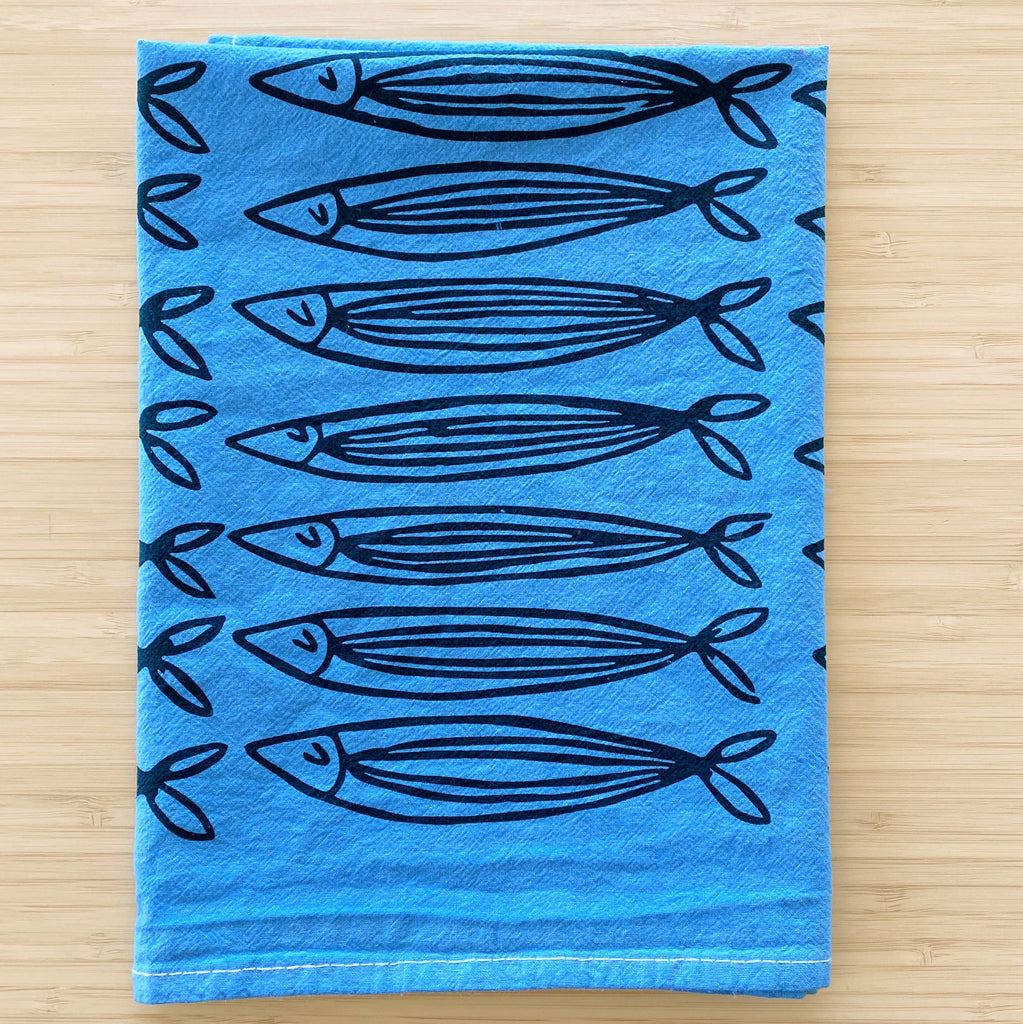Blue Sardines 20" Tea Towel - Silkscreened 100% Cotton