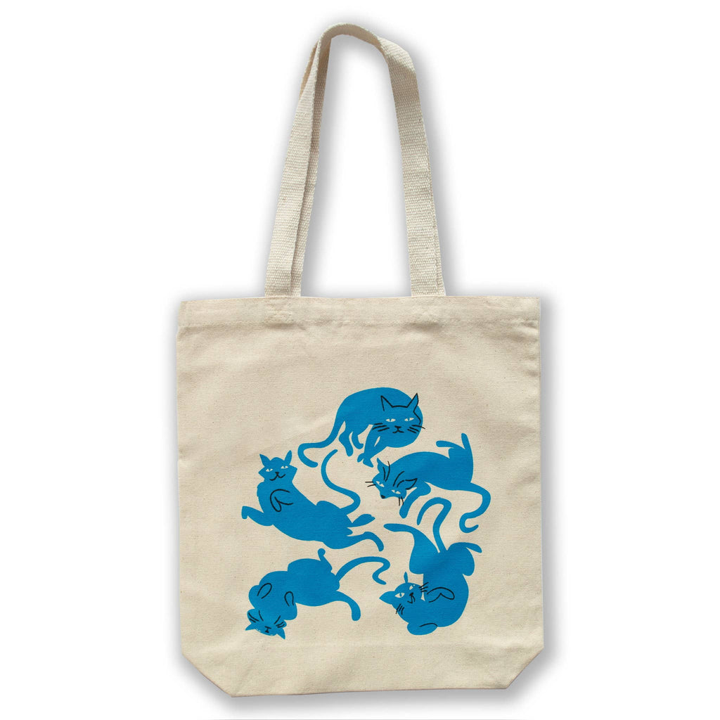 New Cat Tote for all the cat lovers out there. Lolling relaxed cats screen printed in turquoise and charming you with their mischievous and laze-about ways. The perfect tote bag. Great sturdy tote bag for every day use.