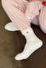 Like walking on clouds! These are hands down the comfiest and cutest socks to wear all year long. Made from a fluffy, terry cotton blend yarn that is breathable and unique. While the exterior is fluffy, the interior is smooth and airy. Now finished with an embroidered ankle detail for a little extra charm. Pair them with your favorite clogs or slides and enjoy the extra cushion.