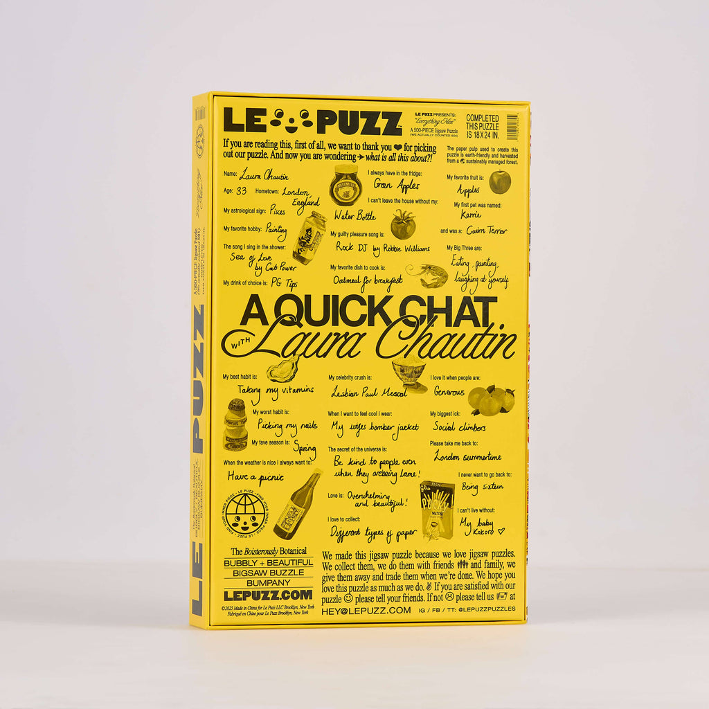 A 500-piece puzzle from Le Puzz made in collaboration with artist and illustrator Laura Chautin, featuring a dreamscape of picnic snacks and goodies.