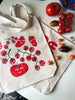 Have you been to your local farmer's market lately? The autumn bounty is beyond, and for us it's all about tomatoes of every stripe: Sungold, Brandywine, Green Zebra and Cherokee Chocolate. They're extra beautiful , but none of them are having as much fun as the tomatoes on our Hot Tomato Tote!