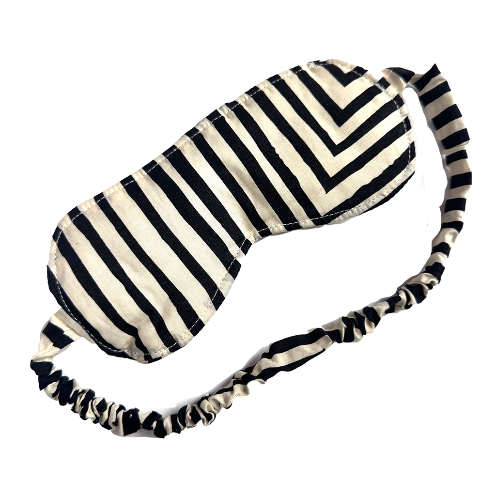 Sleep ever so sweetly with our cotton eye masks! One size fits all. Elastic band covered with matching cotton fabric. These are created using scraps from the bandana-making process, saving excess from the landfill. Details: Double-sided cotton Covered elastic band Cushioned batting Pattern placement will vary