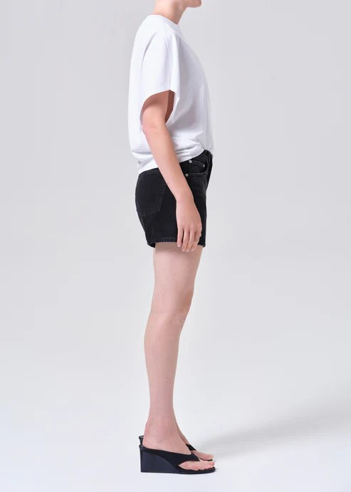 The Parker Long reimagines our iconic short with a slightly longer inseam and a high-rise waist for an easy, relaxed fit. Finished in a dark lightly worn-in black wash, it offers a soft, lived-in look with timeless edge. Crafted from non stretch, weightless 100% regenerative cotton denim washed down for a super soft feel, it delivers airy comfort while maintaining its clean, structured profile. Effortlessly versatile, it pairs seamlessly with simple tanks, crisp shirting, or oversized knits.