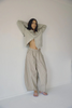 Lightweight stripe cotton pants featuring a barrel pant cut and elastic waist with front pockets.