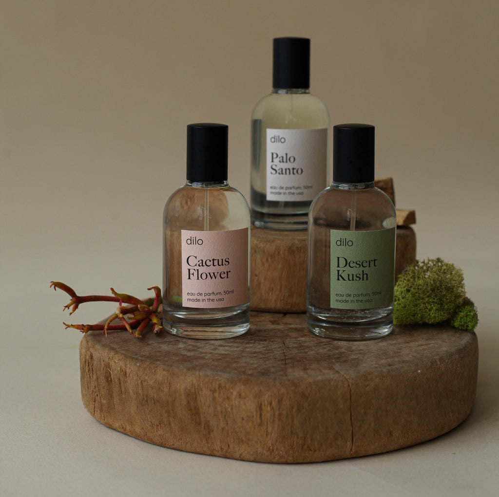 Offered in Palo Santo, Desert Kush, and Cactus Flower - all developed and formulated especially for personal fragrance application - complimentary to the candle home fragrance, but with much more depth.