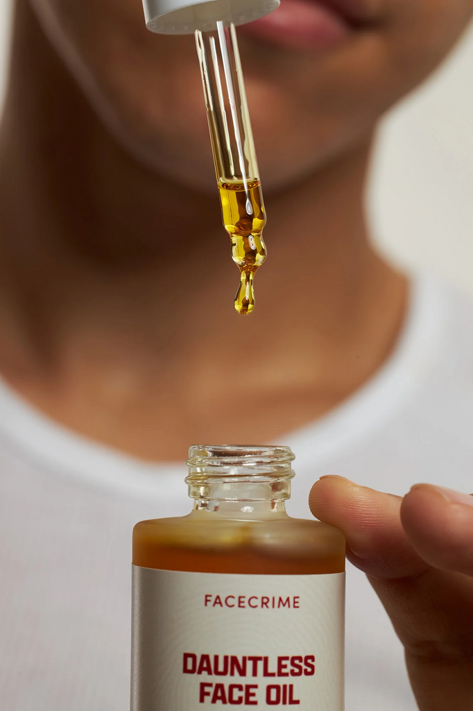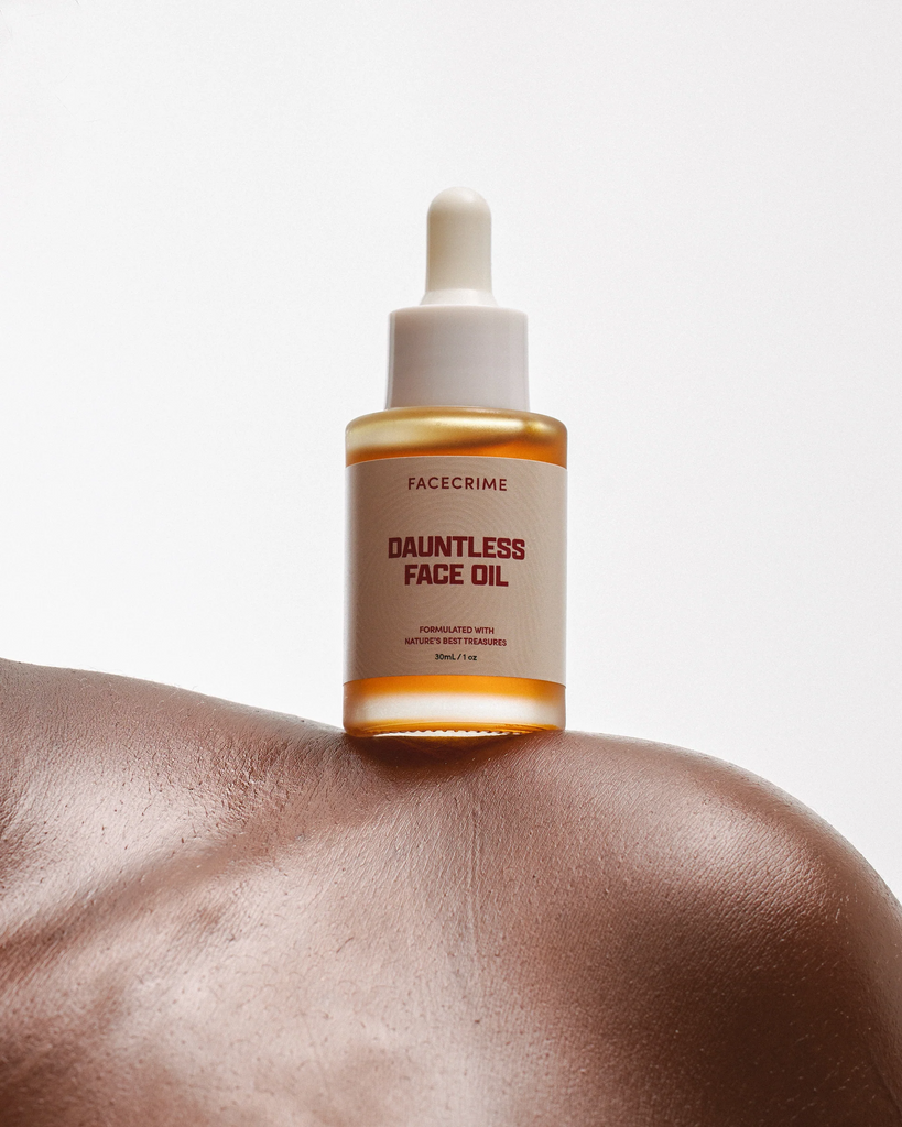 Introducing Dauntless Face Oil, crafted with the highest quality, non-pore clogging ingredients to deliver you a radiant, hydrating glow. This multipurpose oil offers a range of applications such as oil cleansing, after shave, flawless makeup, and deep hydration.