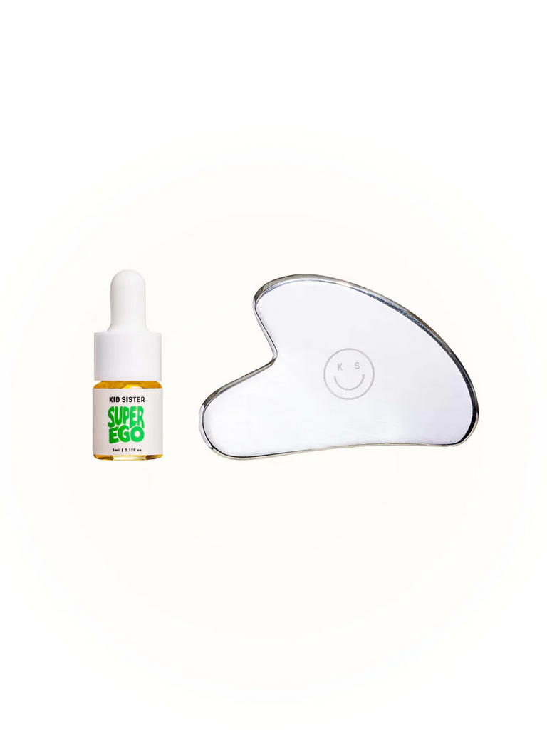 Comes with one 5ml Super Ego face oil and one stainless steel gua sha.