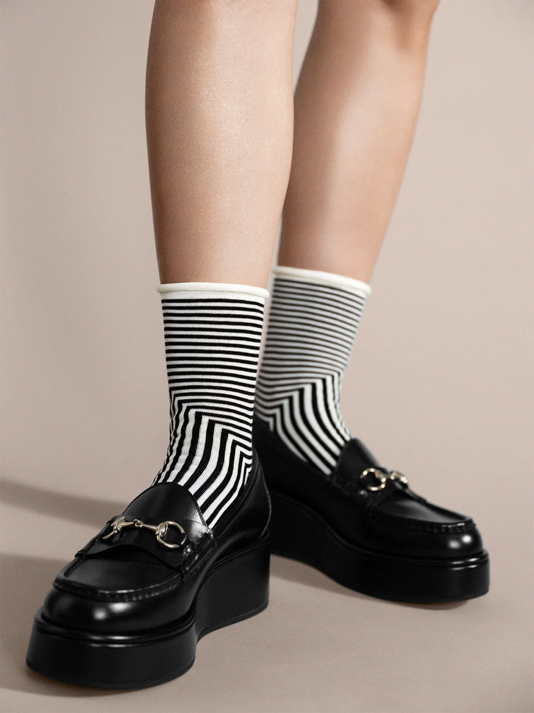 Calling all design nerds! An homage to the famous Swiss-French architect, this graphic pair of roll cuff socks made of mercerized cotton will definitely turn heads and catch eyes.