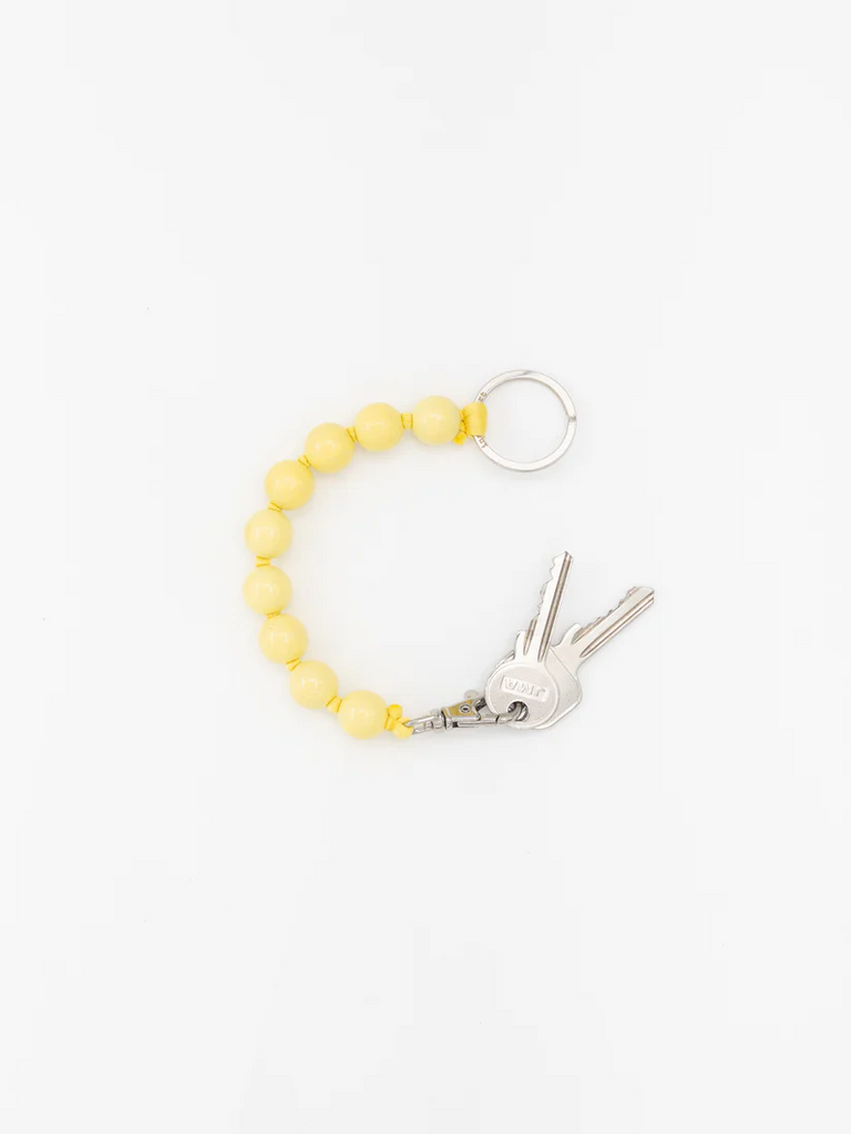Keychain with elastic band and threaded wooden beads.