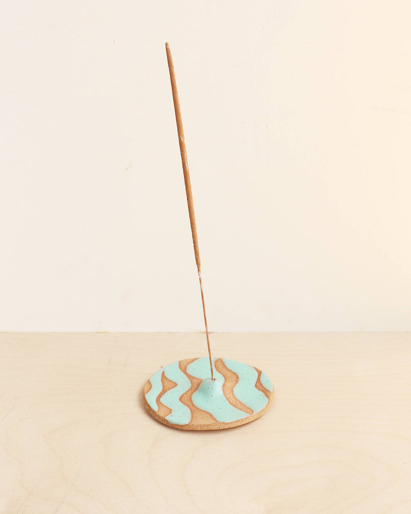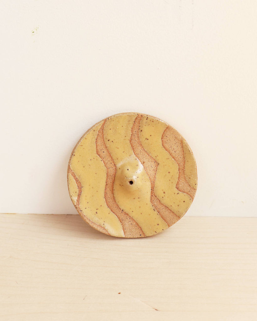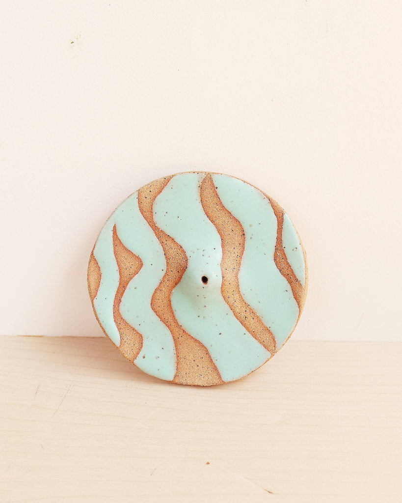 BIG! This incense holder is extra large, approx 4" in diameter with a delightful wavy pattern. Available in two vibrant colours, banana yellow or minty green.