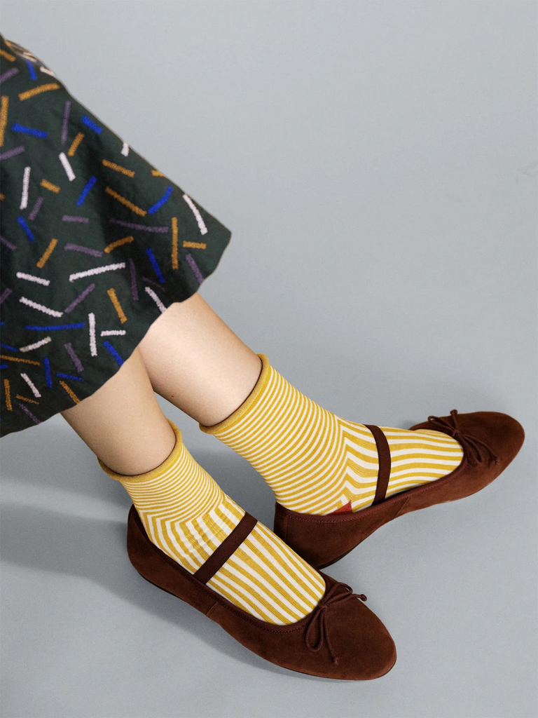 Calling all design nerds! An homage to the famous Swiss-French architect, this graphic pair of roll cuff socks made of mercerized cotton will definitely turn heads and catch eyes.