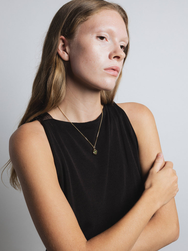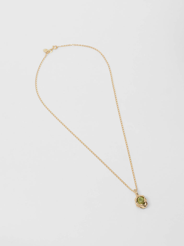 * 14k Gold plated brass pendant with genuine green Peridot gemstone on gold vermeil elongated curb chain
