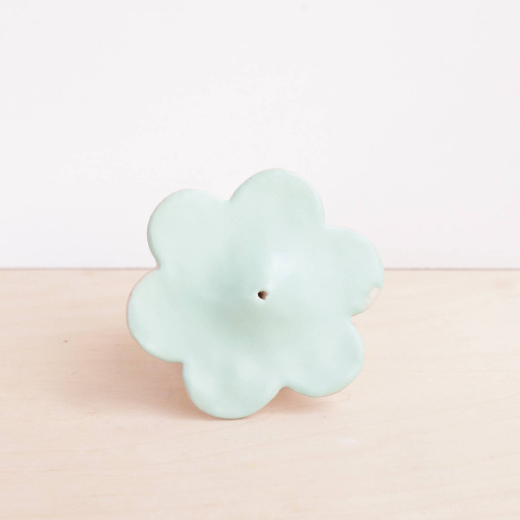 Modern, minimalist incense holder in a simple floral design. A bright satin glaze finishes the piece, available in three different colours. •stoneware, 3" diameter •incense not included