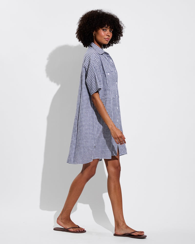 LOOSE BUTTON DOWN, SHORT SLEEVE, ABOVE THE KNEE
