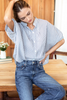 / Mandarin Collar Top - Indigo Stripe Organic
