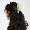 This large hair claw works like a dream on all hair types and textures. Perfect for medium to longer hair lengths. Made from high-quality acetate; a durable, plant-based bio-plastic. Metal hardware is lead and nickel-free. Slight variations will appear with pattern, color, and form due to the handmade nature of the product. Measures approx 5""L x 2.25""H x 1.75""D Color: iridescent multicolor (yellow, blue, peach), silver-tone hardware