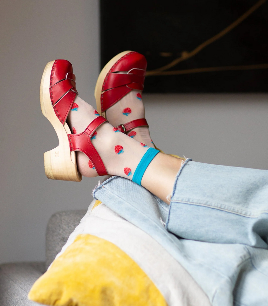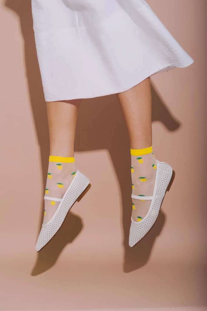 Fun, bright, and a little unexpected—our Sheer Fruit Socks bring a playful twist to your wardrobe. A stocking-like feel with a colourful ankle band and sheer toe and heel, they’re as light as they are eye-catching. Available in four juicy fruit patterns, they add a youthful pop of personality to sneakers, sandals, or heels. For best care, hand wash or use a delicate cycle. Size W 6 - 9.5.