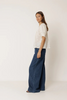 Lace finish on neckline and placket. • Fitted shoulder and slightly puffed short sleeves with rubber-finished cuffs. • Drawstrings at the waist making the bottom of the garment have a slight flare. • Floral stamp print on sustainable cotton dobby. • Relaxed Fit: Designed to feel slightly loose. • Measurements on size S in flat: Length from shoulder 60cm. Chest width 49cm. Bottom width 66cm.