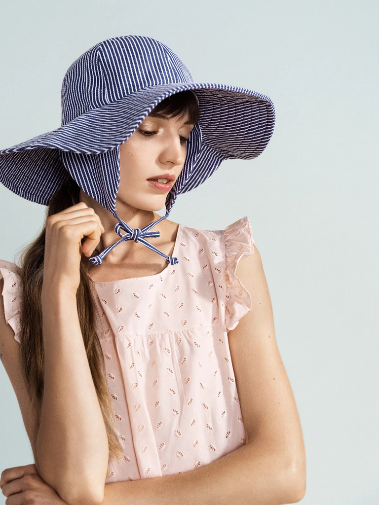 Striped Noona Sun Hat-blue