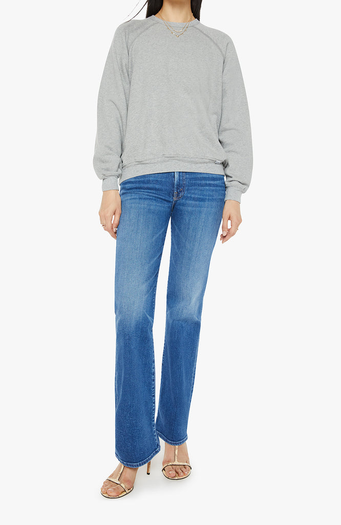An oversized raglan sweatshirt with a crewneck, ribbed hems and a slightly cropped fit. Made from super-soft 100% cotton, the sweatshirt is designed in heathered grey.