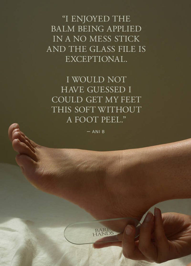 Smooth and condition feet at home, naturally. The foot file and Verbena balm work in tandem to physically exfoliate and lock in moisture. The unique glass surface smooths with a precise abrasion, eliminating the need for harsh grating or odorous acid peels. The lightly scented stick glides across the skin and melts into an ultra rich oil that doubles as an all-purpose soother for hands, lips, elbows and more. Its paper push-up tube is a new, less messy way to moisturize at home or for a travel bag.